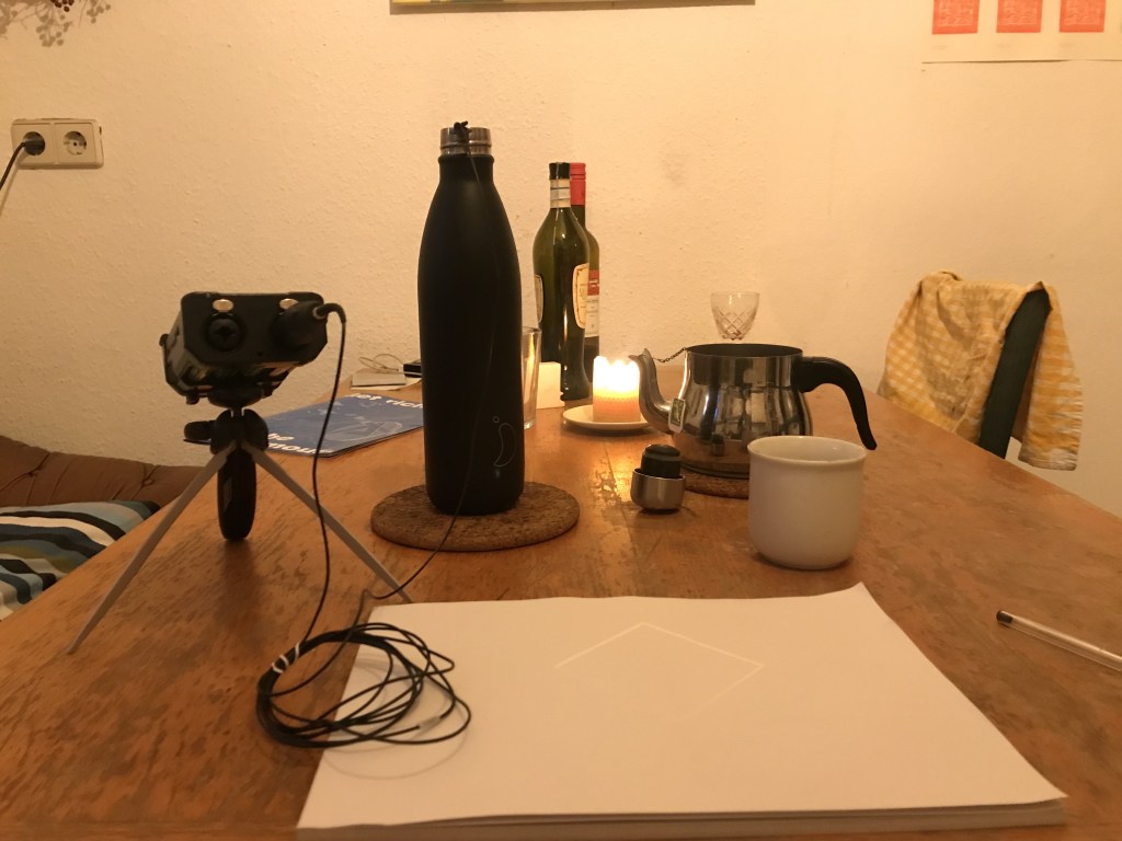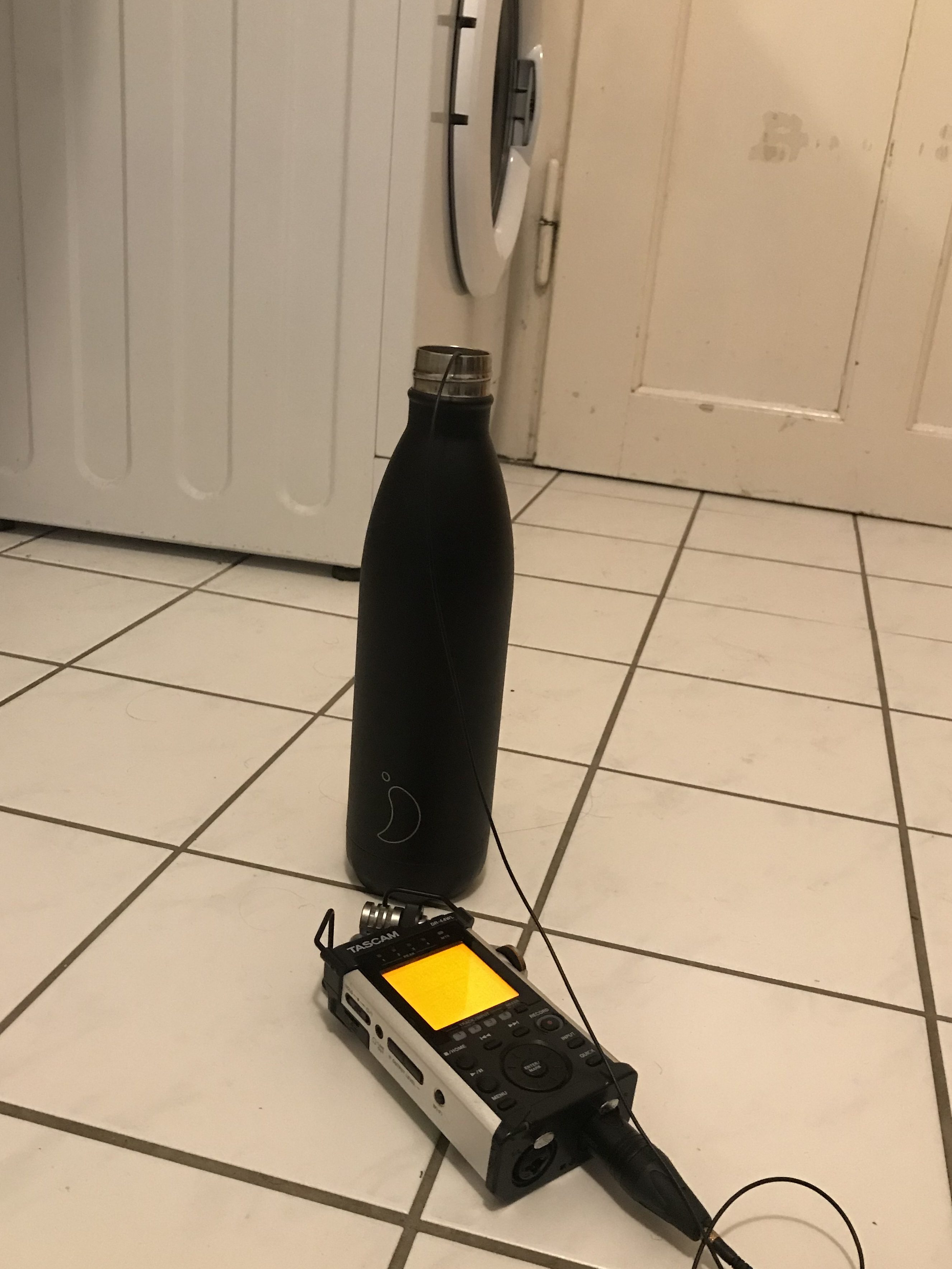 Als Resonator diente eine metallene Thermosflasche, mithilfe eines DPA-Mikrofons habe ich die Vibrationen in der leeren Flasche aufgenommen.