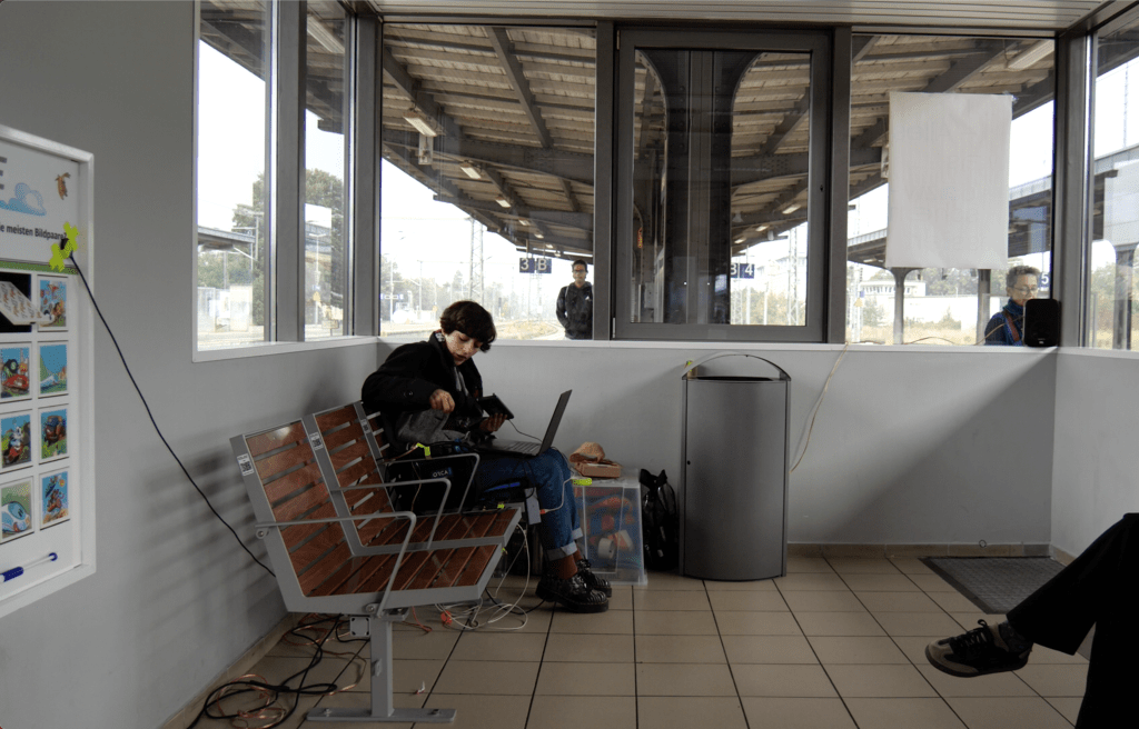 Ein weiterer Teil der Performance sind literarische Schnipsel, die Wartesituationen beschreiben – vom Summen über genervte Seufzer bis hin zu Liebeserklärungen an die Sonne. Diese Snippets wurden von der Sängerin Friederike Wrobel eingesungen. Um auf Situationen und Stimmungen am Bahnsteig zu reagieren, habe ich diese Samples in den Livestream eingespielt.